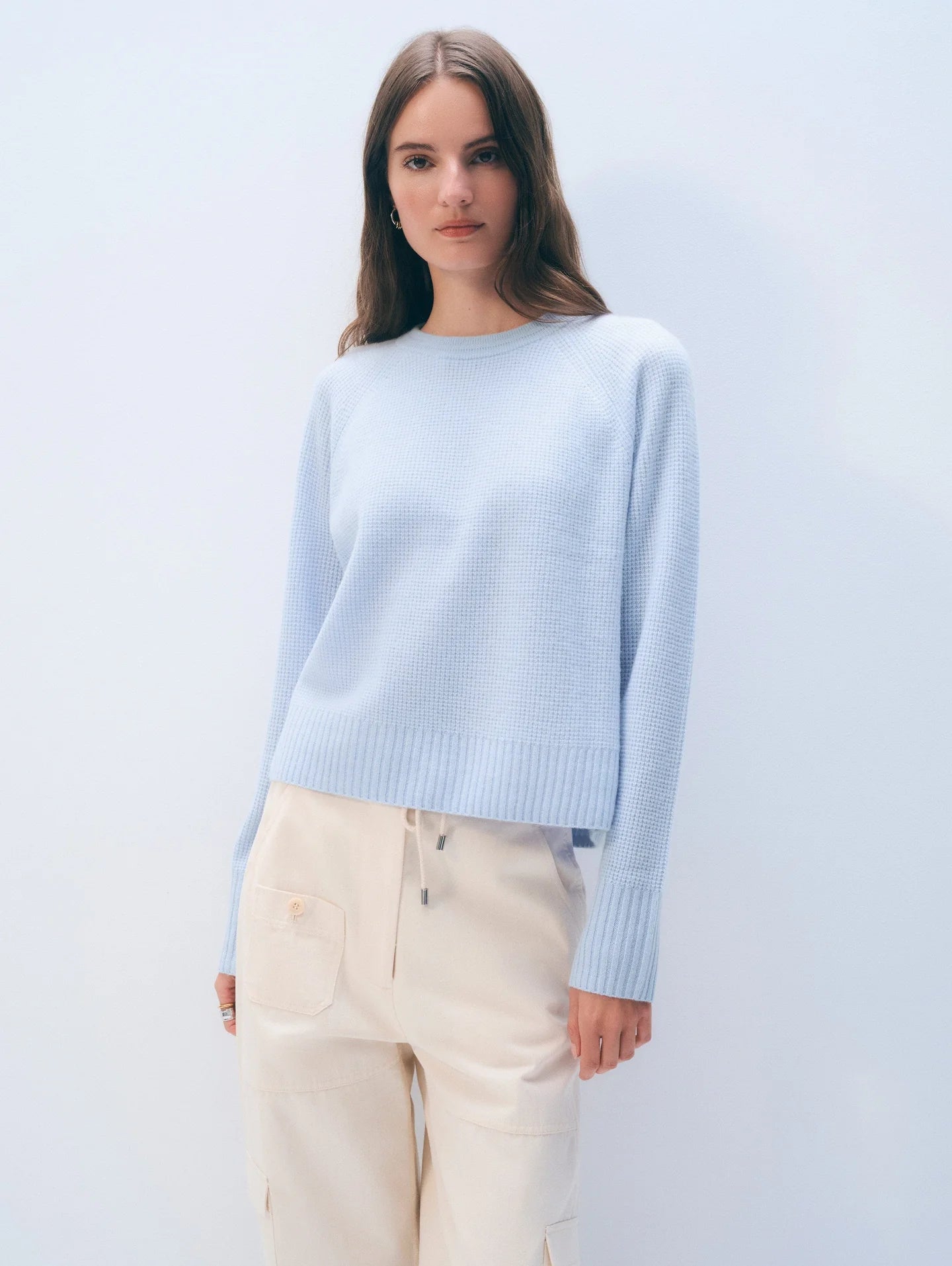 A luxury crewneck you'll reach for daily. Knit with pure cashmere in a waffle stitch, it offers exceptional softness and rich texture. This easy fit is refined with raglan sleeves and subtle back-neck tacking.