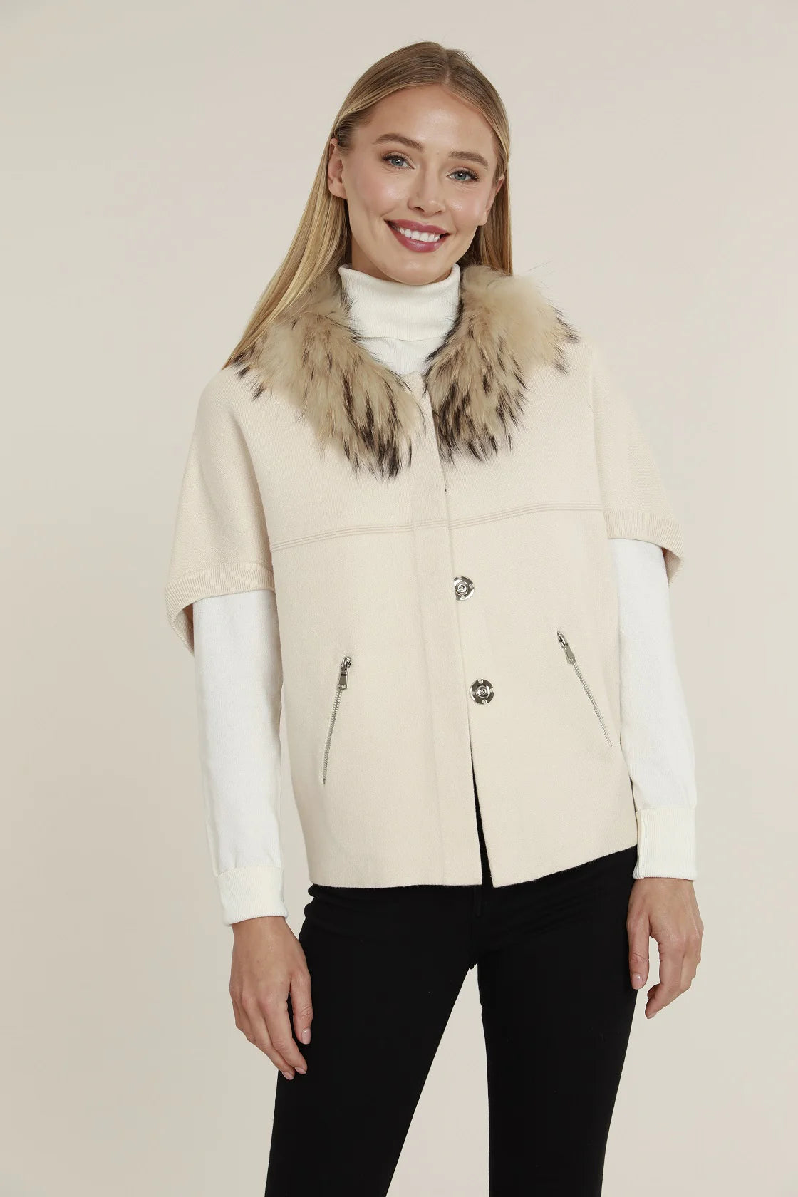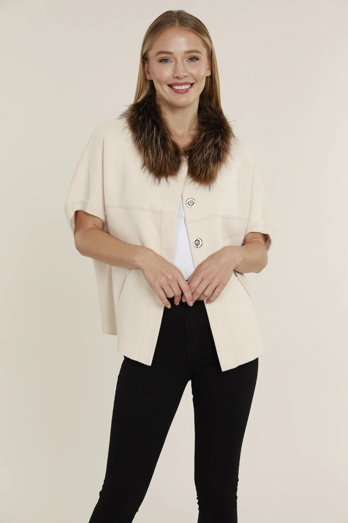 A chic addition to any wardrobe, our Short Sleeve Cardigan with Natural Fur Collar seamlessly combines comfort and elegance. Featuring a dropped shoulder design, its standout element is the luxurious 100% raccoon fur collar, which offers a touch of opulence. Hidden front snaps maintain a clean and polished aesthetic, making this cardigan a versatile choice for both casual and formal occasions.