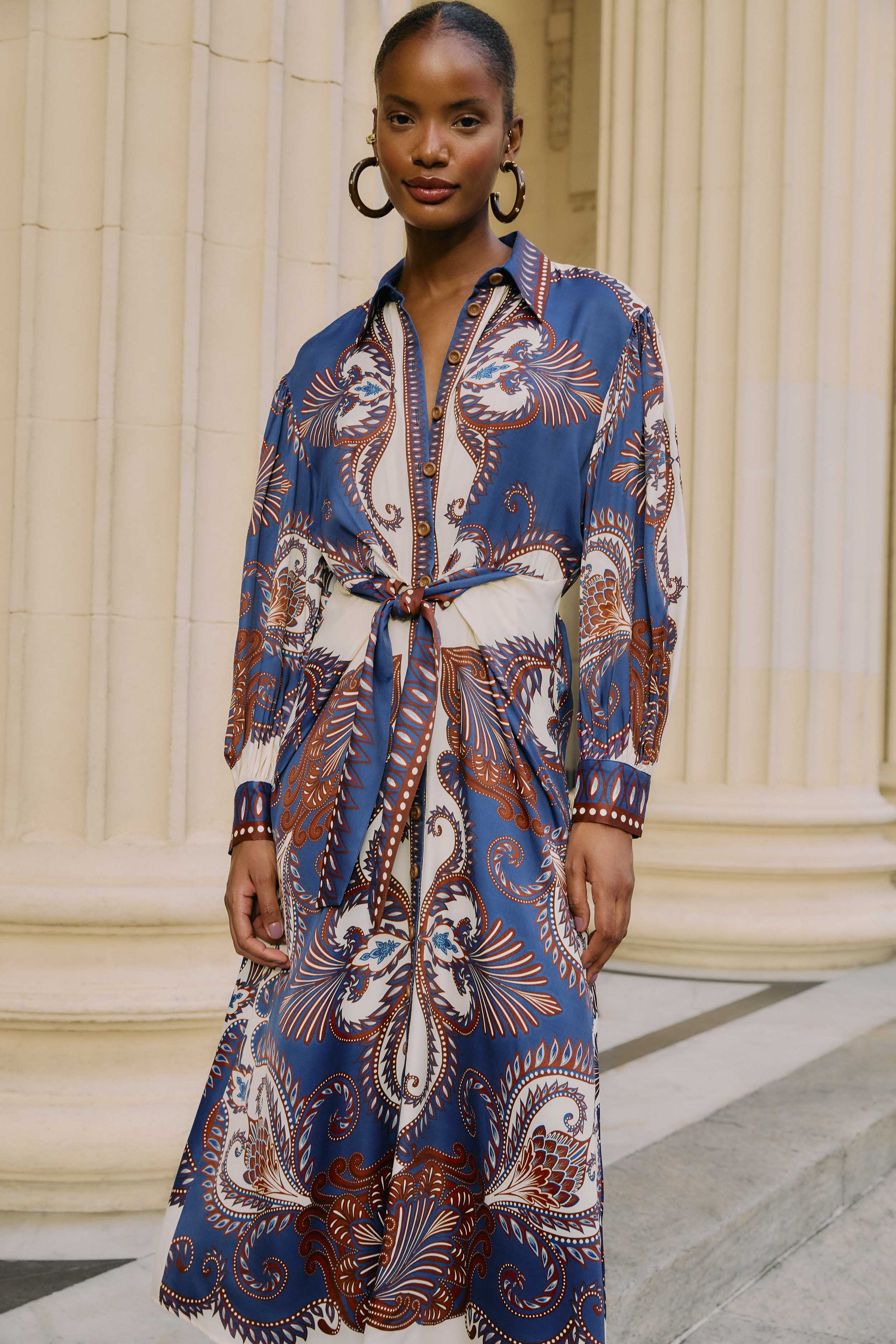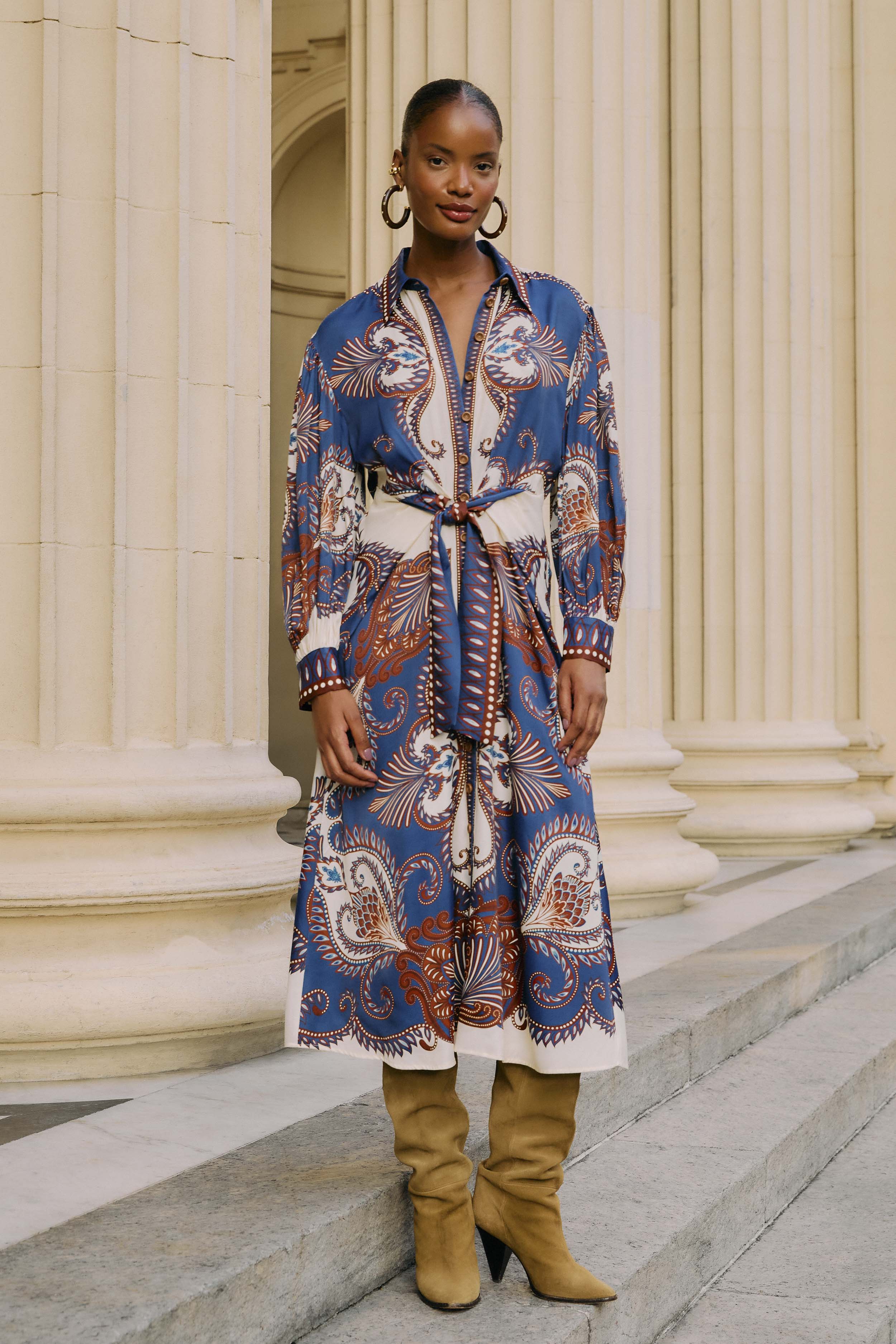 Arabesque Scarf Blue Midi Dress